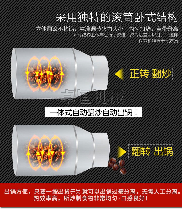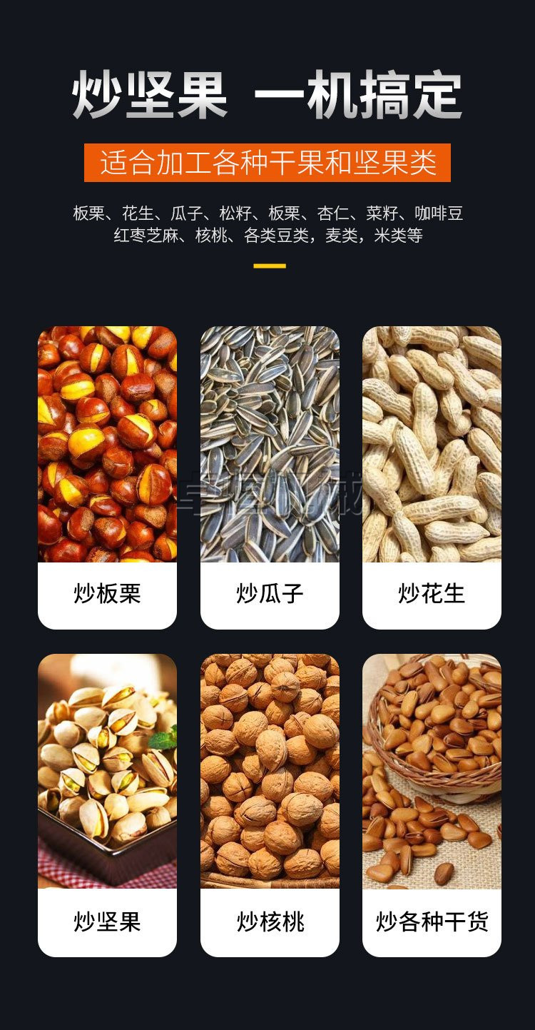 炒货机俗称炒锅是一种用途较广的炒货干燥烘干设备,适合小型化工厂作业、批发加工等,可用于加工各种五谷杂粮、干果和坚果类物料的炒制加工炒货机是用于炒栗子、炒花生、瓜子、核桃等几十种炒货,一机多用,具有绿色,保温节能,方便快捷,省工省时等。