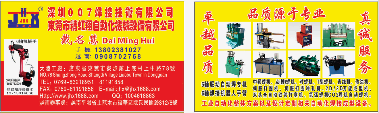 本厂专业生产焊接及五金工艺成形设备。十多年以年,我们总结台湾、日本技术,结合实际众多工厂现场回溃、以及自身众多经验,开发研究生产一条龙。自产,自销,同时诚征代理商的合作。长期以来,我们本着互惠互利的原则,高品质,优价格,深受海内外、全国各地客户的好评和青睐。