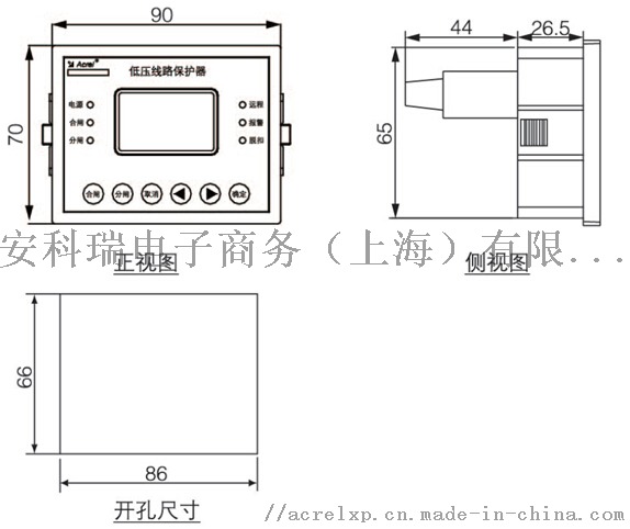 防护等级 主体IP20,分体显示模块IP45(安装在柜体面板时)