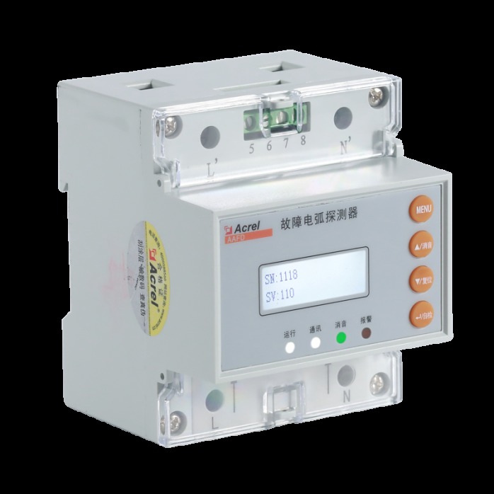 故障电弧探测器(以下简称探测器)对接入线路中的故障电弧(包括故障并联电弧、故障串联电弧)进行有效的检测,当检测到线路中存在引起火灾的故障电弧时,可以进行现场的声光报警,并将报警信息传输给上端监控设备,以实现预警火灾发生的目的。