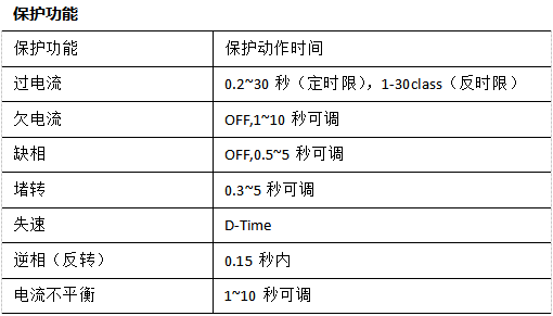 ◆ 附加功能:掉电保护、运行时间累计、记录 后三次故障原因及电流和多种复位方式选择