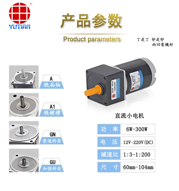 2、雨田(YUTIAN)电机向您承诺所有产品"铜线"纯金属齿轮制作,免费质保12个月(除定制产品).