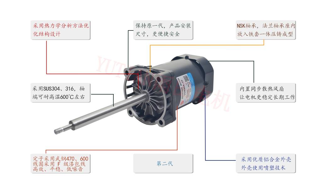(4)高温马达采用高温H级绝缘材料,保证马达在高温环境下安全运行,不老化、不烧坏。