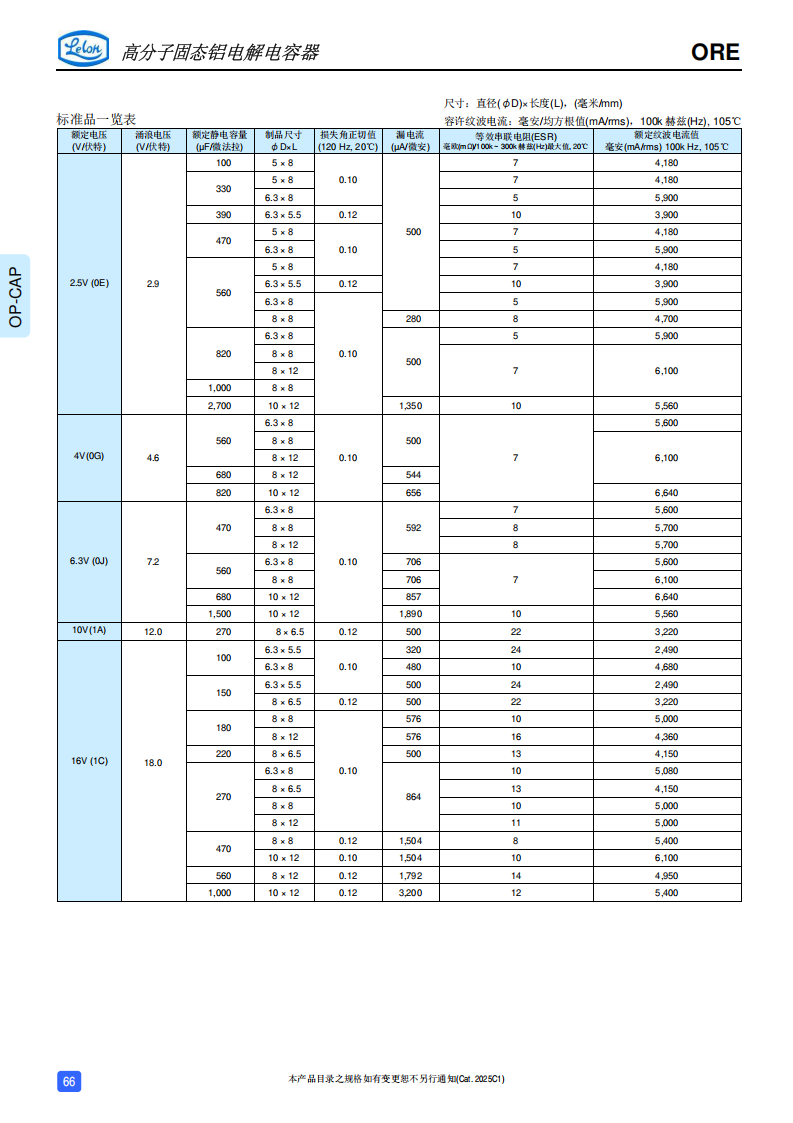 高分子固态铝电解电容器ORE 系列