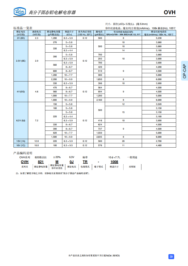 高分子固态铝电解电容器OVH 系列