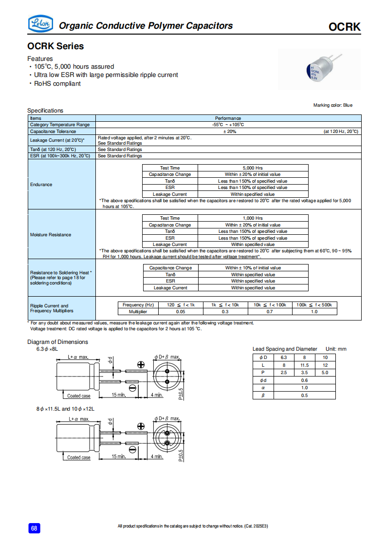 高分子固态铝电解电容器OCRK 系列