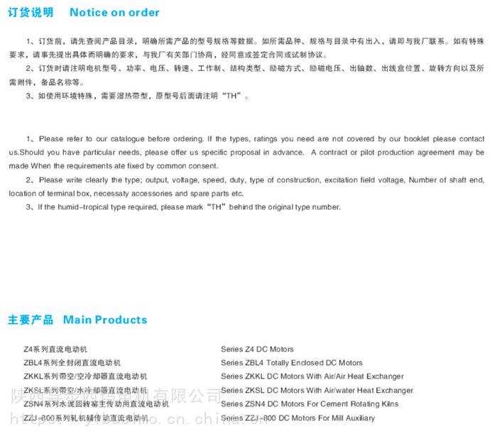 2.电动机的励磁方式为他励,励磁电压为180V或310V。根据需要也可派生出其他等级电压。
