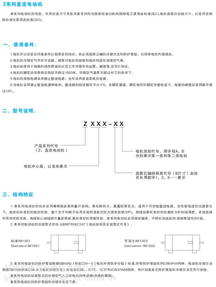 1.Z中型直流电机的额定功率是指在海拔不超过1000米,环境空气温度不超过40℃的条件下。
