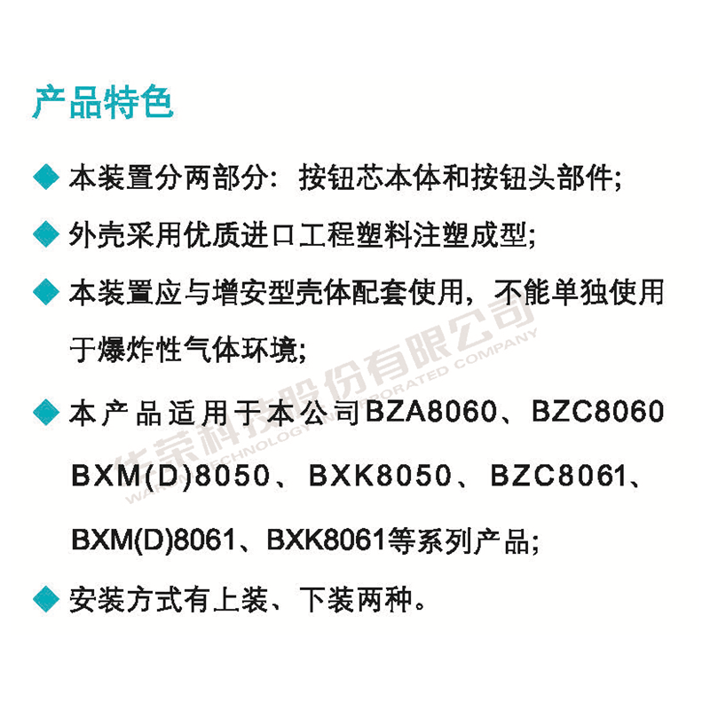 | 品牌 : | 上海华荣 | 型号 : | BA8060 系列防爆按钮装置 |