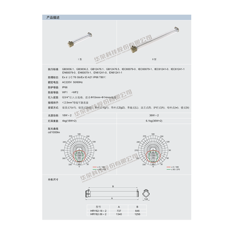 | 品牌 : | 上海华荣 | 型号 : | HRY82 系列隔爆型防爆荧光灯 |