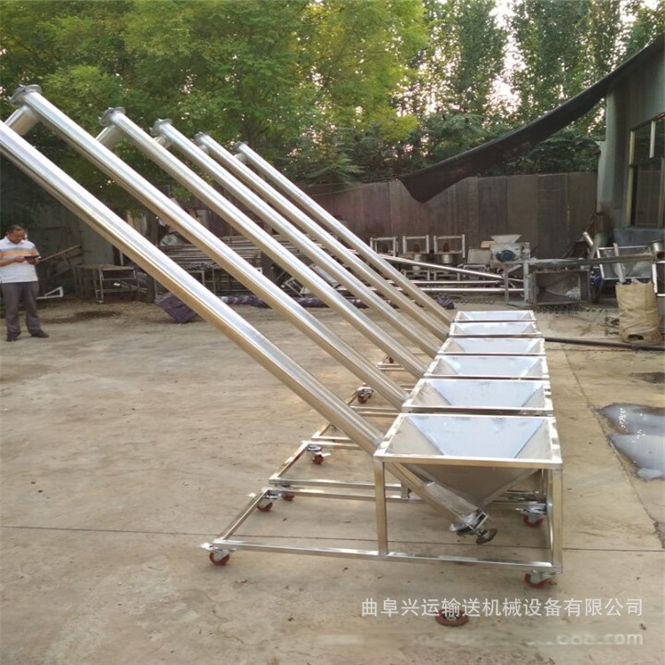 不堵料螺旋输送机 轴承密封螺旋上料机 又名螺旋上料机,能够提升多种粉料物料,可与包装机配套实现料位跟踪自动供料,也可单独在其他场合使用。除电机、轴承、机架外其余均为不锈钢制成。需根据不同的物料,不同的上料高度等参数来确定使用型号标准。