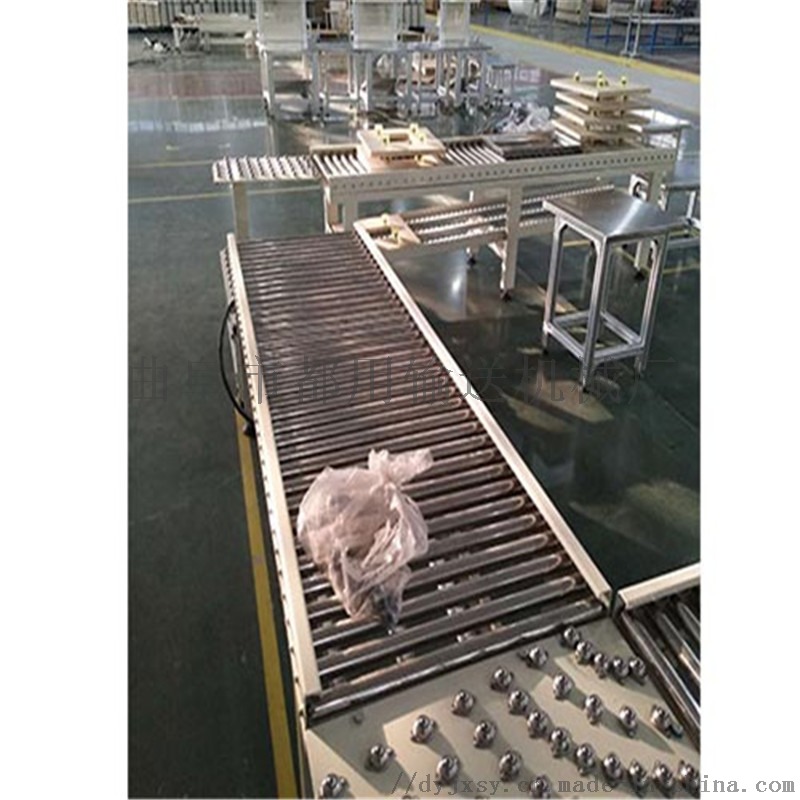 设备特点:滚筒输送机之间易于衔接过渡,可用多条滚筒线及其它输送设备或专机组成复杂的物流输送系统以及分流合流系统,动力滚筒线考虑链条抗拉强度,  单线长度一般不超过10米。
