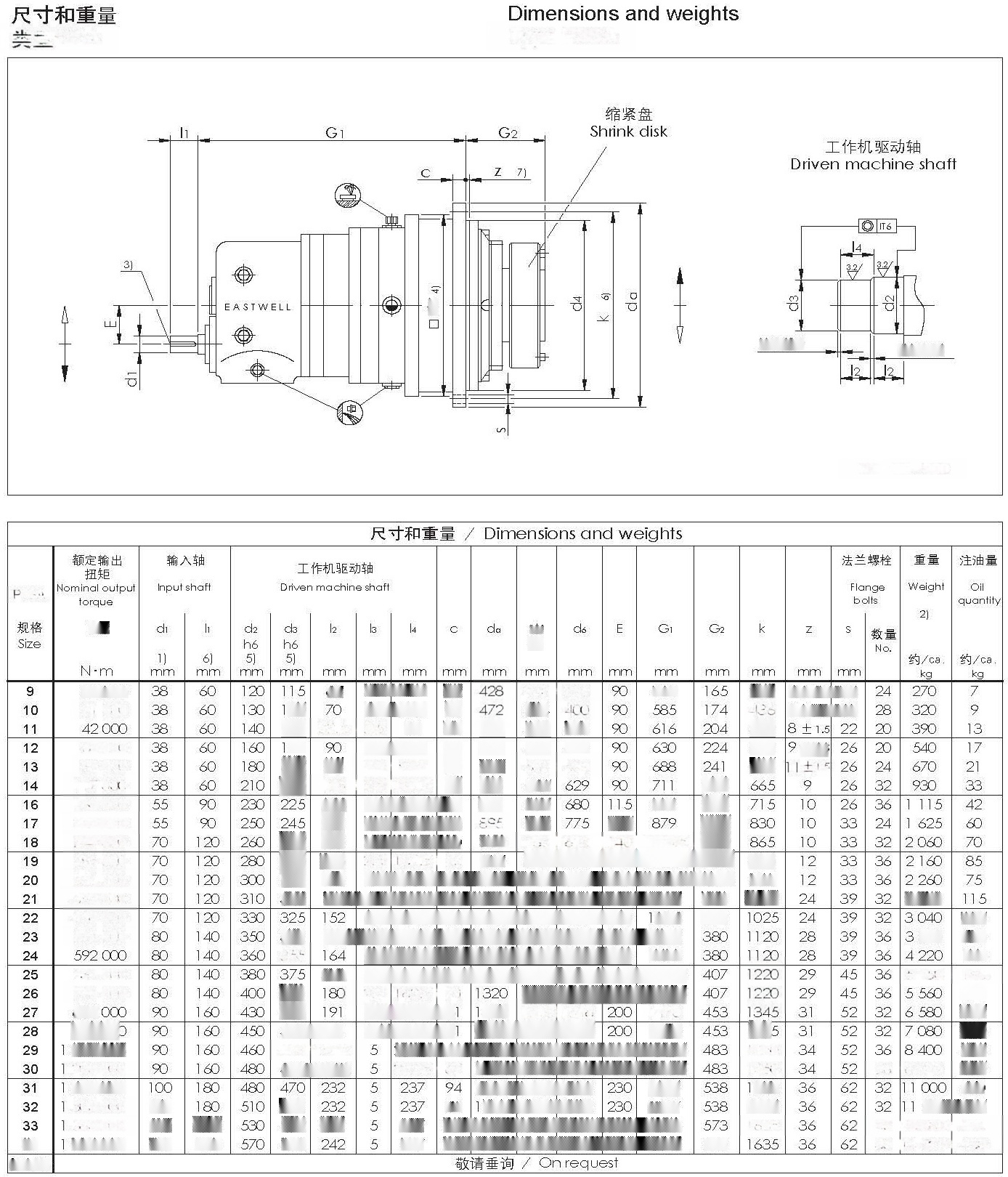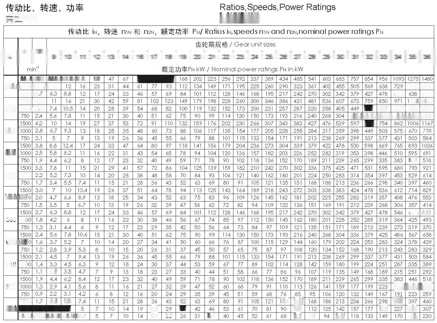 2、根据所需扭矩、功率、速比/输出转速、使用系数等进一步确认机座号(37/47、57.......)