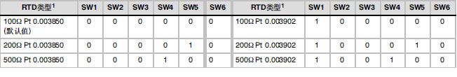 热电阻的阻值能够随着温度的变化而变化,且阻值与温度具有一定的数学关系,这种关系是电阻变化率α。RTD模块的拨码开关设置与α有关,如下图所示,就算同是 Pt100,α值不同时拨码开关的设置也不同。在选择热电阻时,请尽量弄清楚α参数,按 照对应的拨码去设置。具体请参看《S7-200可编程控制器系统手册》的附录A-热电偶和热电阻扩展模块介绍。