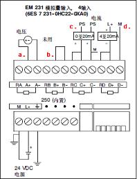 注:具体请参见:《S7-200 ? LOGO? SITOP 参考》->模拟量模块接线。