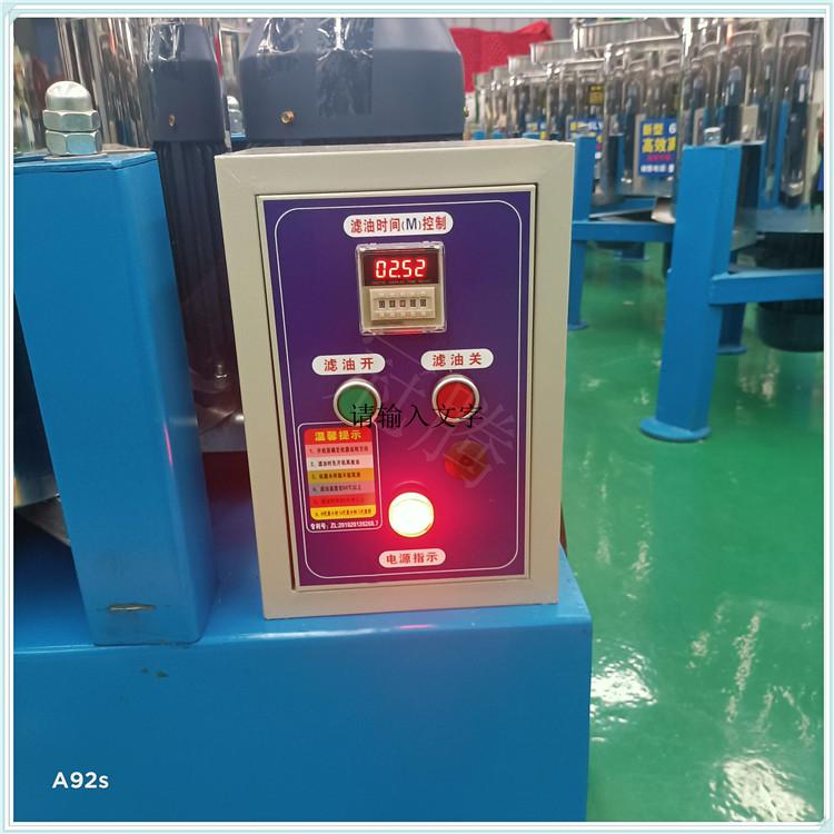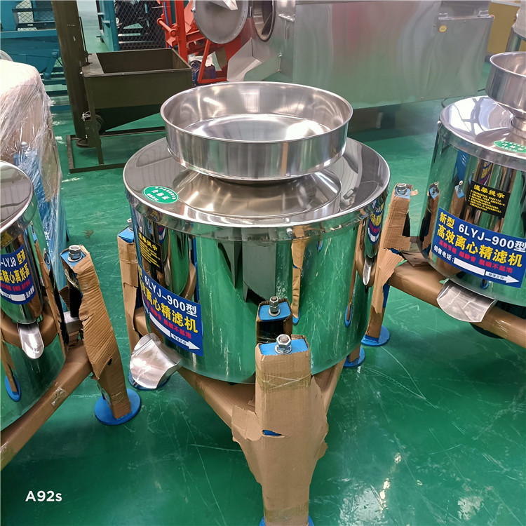 离心滤油机(也叫花生油滤油机,大豆油滤油机)是利用离心力分离悬浮杂质的一种方法,工作时是通过高速旋转的转鼓的离心力使杂质和油分离开,达到液固分离。当转鼓停止旋转时净油从转鼓流出 ,达到过滤目的。经过滤后的油质可当时做食用试验,不起沫,不溢锅。