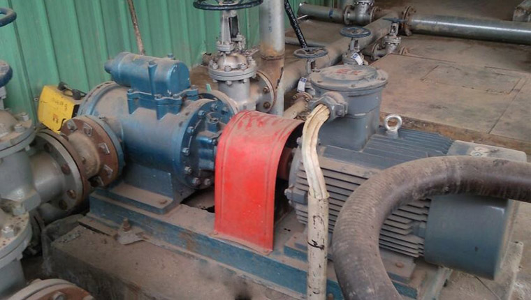 4、对于在较高温度(指60以上)下输送粘度大的油类(如:重油)的备用泵,必须是热备用泵,否则泵在低温下启动会造成电机过载或泵损坏。(建议在靠近泵的排油管上的逆止阀旁,并联安装一个小回流阀,对备用泵可微启回流阀,使泵缓慢逆转,其逆转速100转/分,使部分热油经常流过泵内,达到泵热备用目的)。