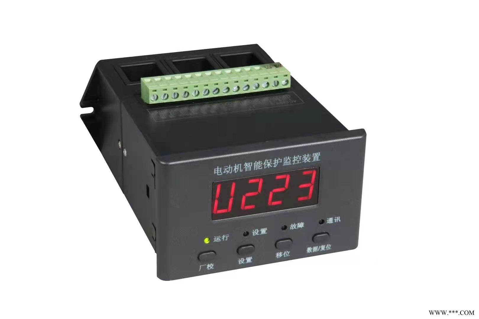 “tE时间保护”符合有关增安型防爆电动机过载保护的国家标准(3-2000)交流采样,测量A、B、C三相电流及控制回路电压现场显示电动机运行状态,保存三次电动机故障跳闸记录一路保护输出,二路自定义继电器输出,一路4~20mA电流输出,一路RS485接口分体式电机保护器可选DI输入模块,控制正反向启动,自启动,及开关量控制单元大屏幕LED或高清晰度宽温液晶显示,并具有背景光,跟随电动机运行状态和用户要求实时显示三相电流不平衡、断相、过压、欠压、自启动等功能用户可取可舍启动中过流保护设定,可根据电机情况进行多种倍数调节模拟量输出微调功能,可以消除由于线路衰减造成的误差精度2路可编程继电器J2 J3多达5种设置输出功能。满足不同的现场保护情况采用E2PROM存储技术,实现参数电设定,掉电后设定参数仍保存下来,勿须再设定采用RS485通信总线,可广泛用于各种监控系统作为带有电机保护及控制的智能化监控单元一机多用,可取代电流表、电压表、热继电器、电流互感器、时间继电器和漏电继电器等