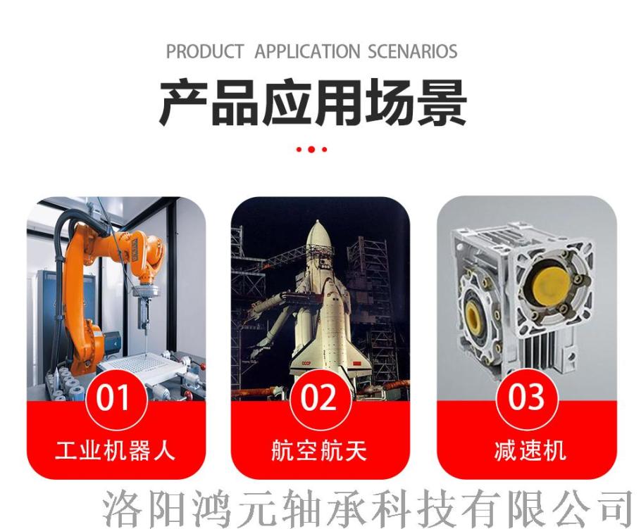性能特点 (除基本功能外的其它特质,例如工作时长、操作简便性等) 介绍:外圈和内圈均为整体结构,安装时对性能几乎没有影响,能够获得稳定的旋转精度和扭矩,主要应用在SHG和SHF系列的各类减速器输出部位。 技术参数 (例如材质、工艺、尺寸的技术标准等)