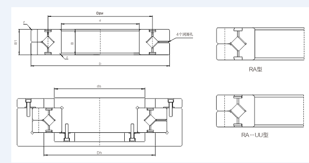 提示:以下模板中任意文字及图片均可执行修改、删除的操作,更多产品描述有助于增加产品对买家的吸引力及搜索曝光率。 基本介绍 (产品的基本描述,如定义、功能等) 交叉滚子轴承的内外环尺寸被最小限度的小型化,特别是超薄结构是接近极限的小型尺寸,并且具有高刚性,所以适合于工业机器人的关节部位或者旋转部位、机械中心的旋转工作台、机械手旋转部、精密旋转工作台、医疗仪器、计量器具、IC制造装置等广泛用途。RU型(内外圈整理、带安装孔),由于外圈和内圈都有安装孔,安装时不需要固定法兰和支撑座。另外,由于外圈和内圈均为整体结构,安装对性能几乎没有影响,因此能够获得稳定的旋转精度和扭矩。适用于外圈和内圈旋转的场合。 性能特点 (除基本功能外的其它特质,例如工作时长、操作简便性等) RAU型(内外圈整体、 ),此型号是将RB型内外圈厚度减小到极限的紧凑型,适合于需要重量轻、紧凑设计的部位,例如机器人和机械手旋转部位,并且能够适用于内圈和外圈都旋转的场合。 技术参数 (例如材质、工艺、尺寸的技术标准等)