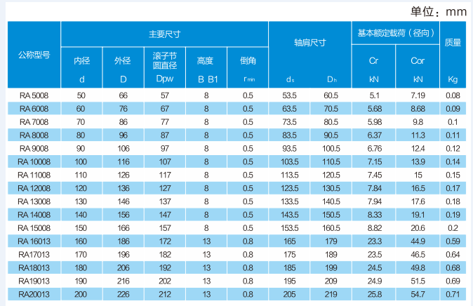 | 滚动体: | 钢球 | 型号: | Rau16013 |