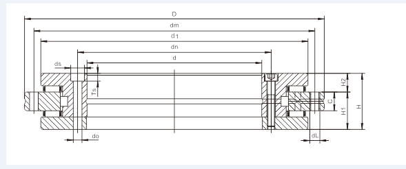 介绍:推力-向心组合结构,可同时承受双向轴向载荷、径向载荷和倾覆力矩。轴承上均布有安装孔,可使用螺栓直接对轴承固定;出厂时轴承已加有预载荷,安装无需调整游隙;YRT转台轴承系列适用于转速较低、运转周期较短、对刚性和精度要求高的场合,如回转工作台、分度头。