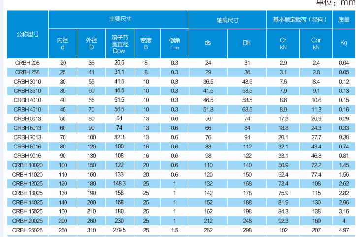 | 滚动体: | 钢球 | 型号: | Crbh2508 |