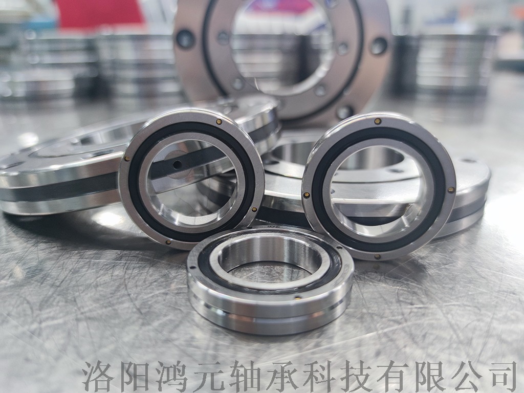 交叉滚子轴承又叫十字交叉滚子轴承,滚动体一般采用圆柱形滚子或者圆锥形滚子在单一的滚道上十字交叉相互排列,滚子与滚子之间通过保持器或者隔离块间隔,由于滚柱为交叉排列,因此1套交叉滚柱轴环就可承受各个方向的负荷,与传统型号相比,刚性提高3~4倍。同时,因交叉滚子轴承内圈或外圈是两分割的构造,轴承间隙可调整,即使被施加预载,也能获得高精度地旋转运动。
