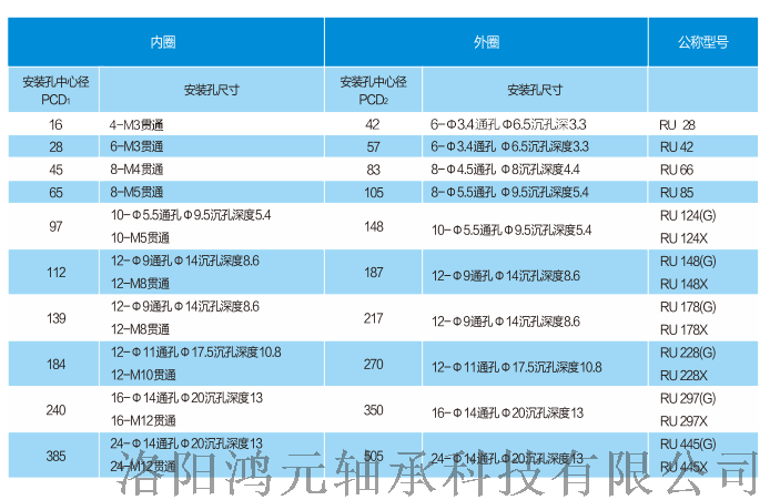 产品名称:RU系列交叉圆柱滚子轴承(内外圈整体、带安装孔)