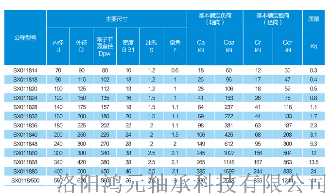 提示:以下模板中任意文字及图片均可执行修改、删除的操作,更多产品描述有助于增加产品对买家的吸引力及搜索曝光率。 基本介绍 (产品的基本描述,如定义、功能等) SX系列交叉圆柱滚子轴承(内圈整体、外圈分体型、) 交叉滚子轴承又叫十字交叉滚子轴承,滚动体一般采用圆柱形滚子或者圆锥形滚子在单一的滚道上十字交叉相互排列,滚子与滚子之间通过保持器或者隔离块间隔,由于滚柱为交叉排列,因此1套交叉滚柱轴环就可承受各个方向的负荷,与传统型号相比,刚性提高3~4倍。同时,因交叉滚子轴承内圈或外圈是两分割的构造,轴承间隙可调整,即使被施加预载,也能获得高精度地旋转运动。 交叉滚子轴承的内外环尺寸被小限度的小型化,特别是结构是接近极限的小型尺寸,并且具有高刚性,所以适合于工业机器人的关节部位或者旋转部位、机械加工中心的旋转工作台、机械手旋转部、精密旋转工作台、医疗仪器、计量器具、IC制造装置等广泛用途。 性能特点 (除基本功能外的其它特质,例如工作时长、操作简便性等) 介绍:SX系列交叉圆柱滚子轴承,在相同的轴颈情况下,此类型比RB系列有很小的截面尺寸,由于采用了设计,外圈和内圈没有安装孔,安装时需要法兰和支撑座固定,适用于内圈旋转的应用场合。 技术参数 (例如材质、工艺、尺寸的技术标准等)