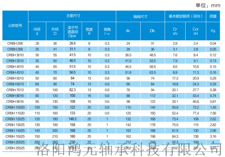 性能特点 (除基本功能外的其它特质,例如工作时长、操作简便性等) 介绍:CRBH系列交叉圆柱滚子轴承,此型号是 型的RU系列轴承,由于采用了 设计而且外圈和内圈没有安装孔,安装时需要法兰和支撑座固定。另外,由于外圈和内圈均为整体结构,安装对性能没有影响,因此能够获得稳定的旋转精度和扭矩,适用于外圈和内圈旋转但有尺寸小型化要求的场合。HRBH20030UUC1P5成品轴承,十字交叉滚子轴承,源头厂家,货源充足,品质保证。 技术参数 (例如材质、工艺、尺寸的技术标准等