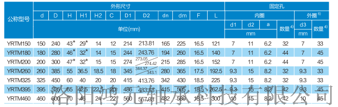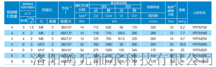 适用范围:被广泛应用于精密回转台立式磨床、分度头、滚齿机、铣齿机工件轴等精密装置 性能特点 (除基本功能外的其它特质,例如工作时长、操作简便性等)产品名称:YRTM轴承系列