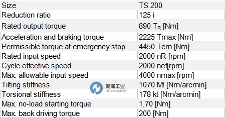 SPINEA减速机TS200-125技术参数