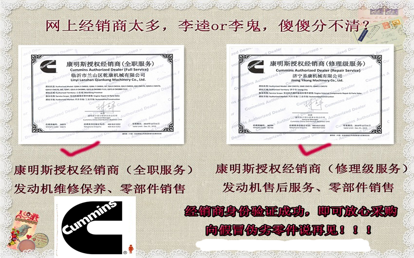 康明斯资质展示(网上假货泛滥,购物务必认准授权 )