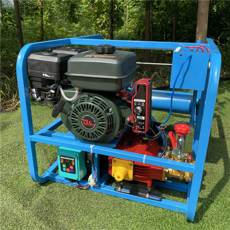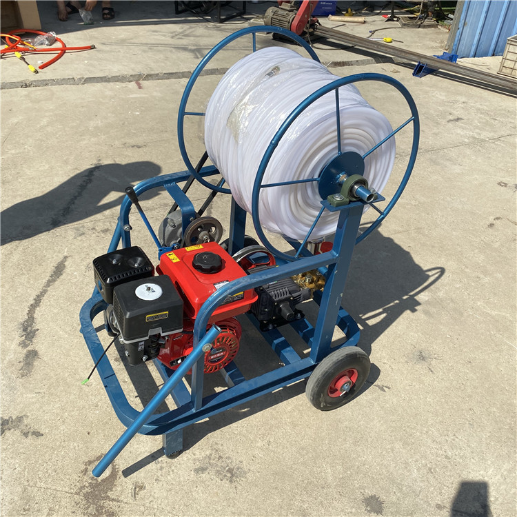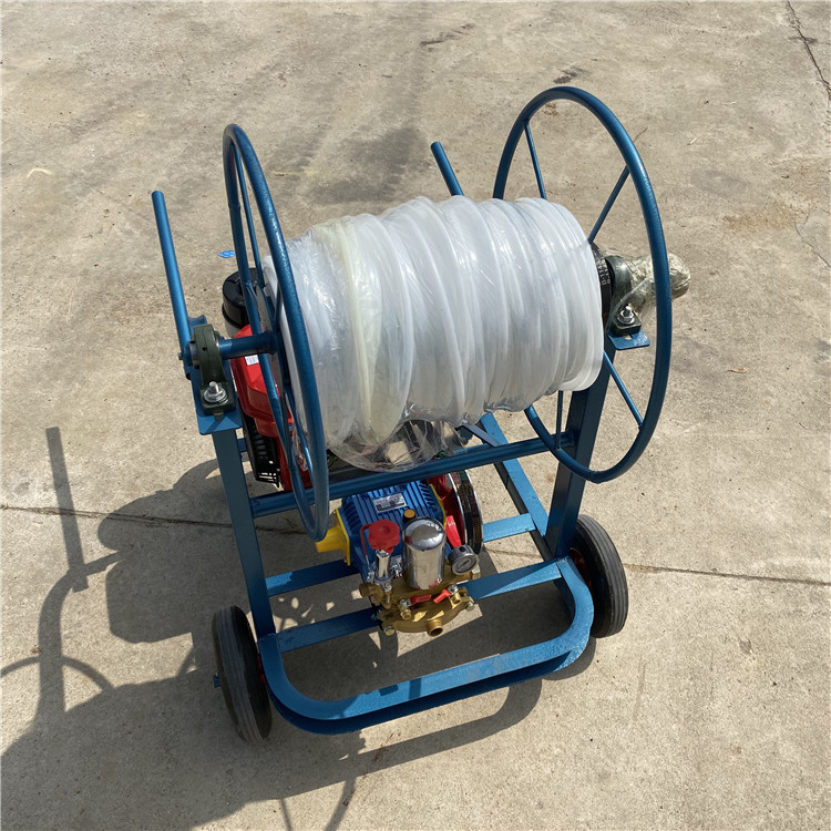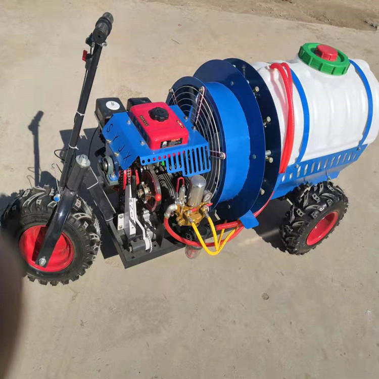 手推式四轮喷雾打药机,牧草打药机园林喷雾器手推式动力喷雾器,又称为四冲程喷雾机,属于高压喷雾器系列。以汽油机为动力,高压柱塞泵为工作源,应用专用喷枪喷雾高度可以达到垂直喷雾25米。如果需要更高喷雾,可延长高压胶管绑在长杆上工作