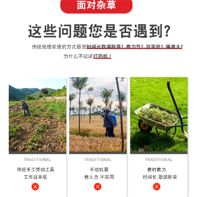 结构紧凑,便于操作,装配进口、国产 强劲汽油发动机,操作简单,方便,性能稳定,维护方便,保证了作业的效率。机架全部采用加强结构,具有,经久的特点。