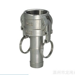 快速接头的型号: A 型、 B 型、 C 型、 D 型、 E 型、 F 型、 DC 型、 DP 型。其中有 A 型、 E 型、 F 型、 DP 型 4 个公头,即没拉环的为公头; B 型、 C 型、 D 型、 DC 型为 4 个母头,即有拉环的为 4 个母头。一般是一公一母配套使用,也可根据需要单个购买。与一般的不锈钢接头相比,不锈钢快速接头 被消费者所喜爱,它具有省时省力、省油、环保、运输方便等优点。