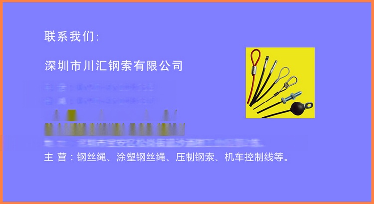 更多关于自行车刹车线、变速线;涂塑钢丝绳; 索具;运动器材钢索;球网拉绳;机车控制线;灯饰、箱包拉线;画框吊线;纺织机械钢索;密码锁具、电脑锁具钢丝绳;工具 绳,工业锁具钢缆绳、以及弹簧钩、葫芦钩、连接环、登山钩、 扣、铝套、铜套、等产品详情,请咨询深圳市川汇钢索有限公司。广东钢丝绳,深圳钢丝绳,东莞钢丝绳吊线,出口钢丝绳,外销钢索,广西钢索,云南钢丝绳索具,河南钢丝绳、贵州钢索吊具,山东钢丝绳、四川钢丝绳,重庆钢索,山西钢丝绳、陕西钢丝绳,甘肃钢丝绳索具,青海钢索,新疆钢索