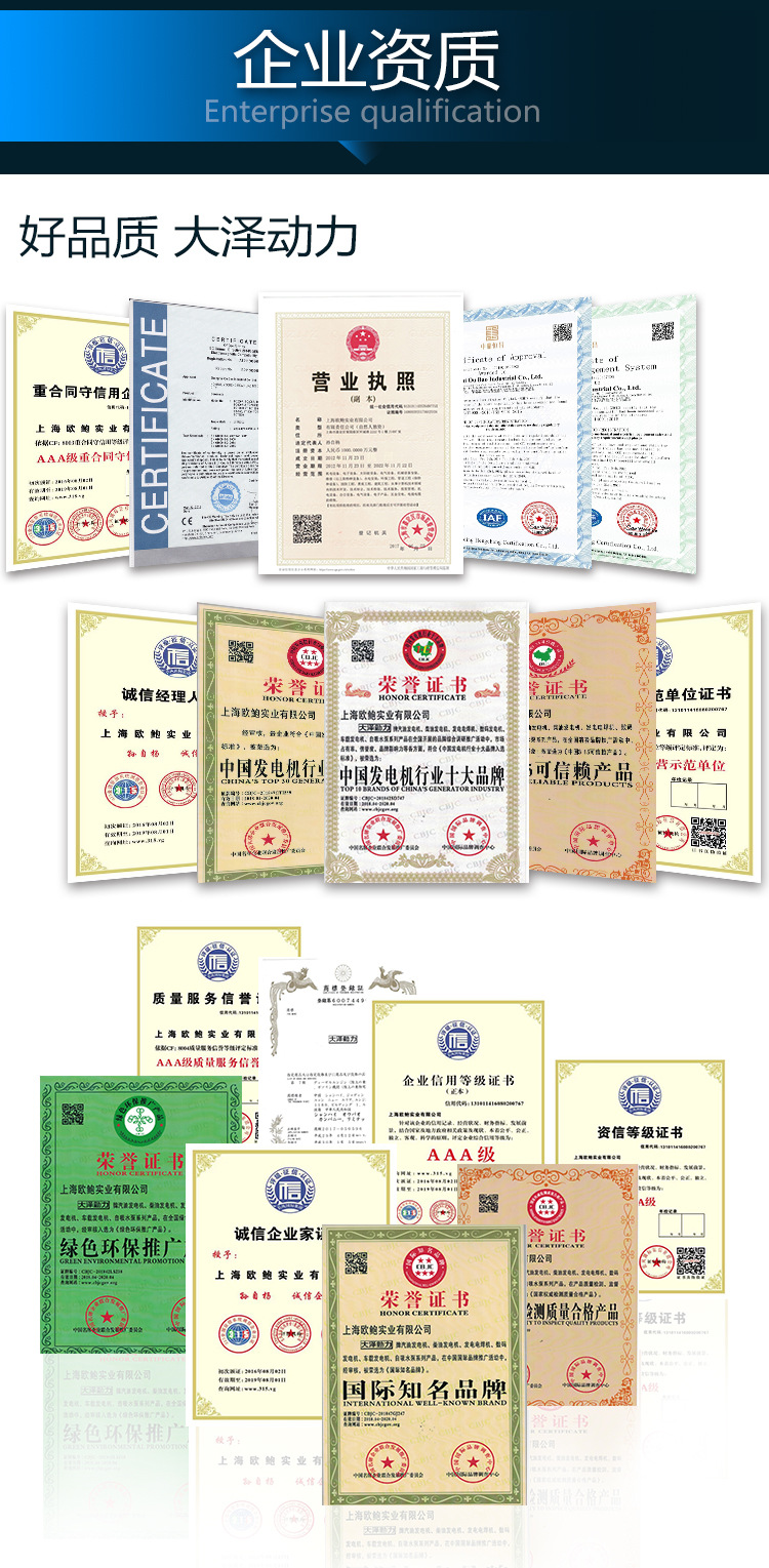 现代化的生产厂房、生产流水线、检测线;现代企业管理观念、完善的质量管理体系,雄厚的技术力量和产品研发能力,是我公司产品质量能得到保证的基础。做诚信企业,质量为生存之本是我司生存和发展的一指导思想。汽油发电机组运行成本低。新能源、变废为宝以及环保清洁的排放越来越成为用品的可以选择。
