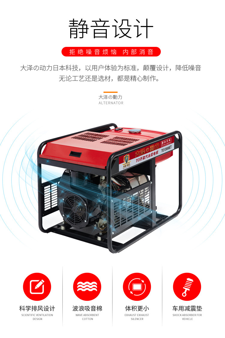 汽油发动机是以汽油作为燃料的发动机。由于汽油粘性小,蒸发快,可以用汽油喷射系统将汽油喷入气缸,经过压缩达到一定的温度和压力后,用火花塞点燃,使气体膨胀做功。汽油机的特点是转速高,结构简单,质量轻,造价低廉,运转平稳。与柴油发动机相比,汽油机具有噪声低,运转平顺、冬季易于启动、发动机有效转速范围大(1000-7000rpm)、响应速度快等特点。你一定看过灾难片,甚至可能亲自经历过,在技术崩溃是遭受灾难(如: )袭击的地方,电力供应就成了严重的问题。轻则不能使用电饭锅,重则甚至通讯中断,无法得到救援。所以在可能的电力中断来临前,准备一台发电机似乎就显得很有好要了。