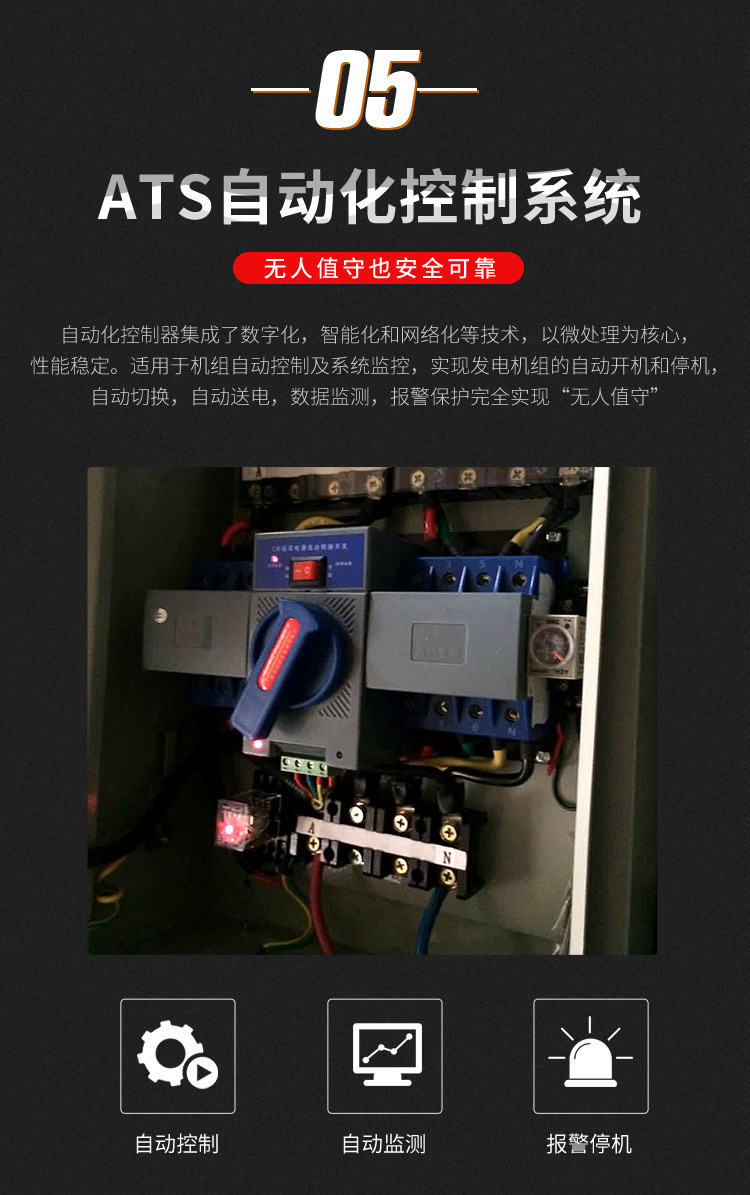 静音柴油发电机组采用功能齐全的高集成控制将传统的简单功能的分离元件控制发展成广泛应用现代高科技成果的模块化高集成控制。一方面增加控制功能,包括机组的保护、运行参数的显示、历史记录及其远程电脑监控、负载的优化管理等;另一方面实现少触点甚至无触点控制,提高运行的可靠性。