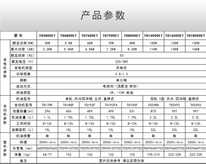 | 系列: | 开架柴油发电机 | 动力类型: | 柴油 |