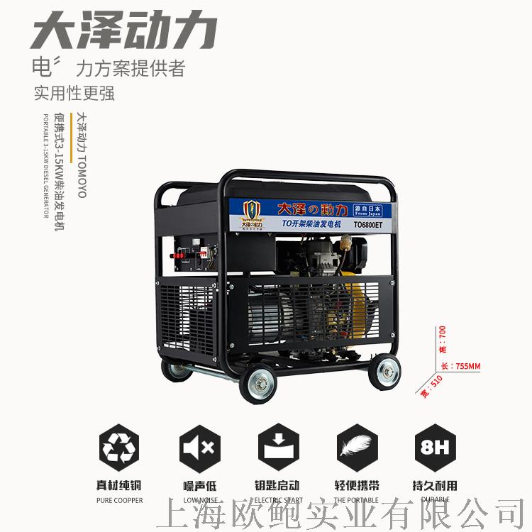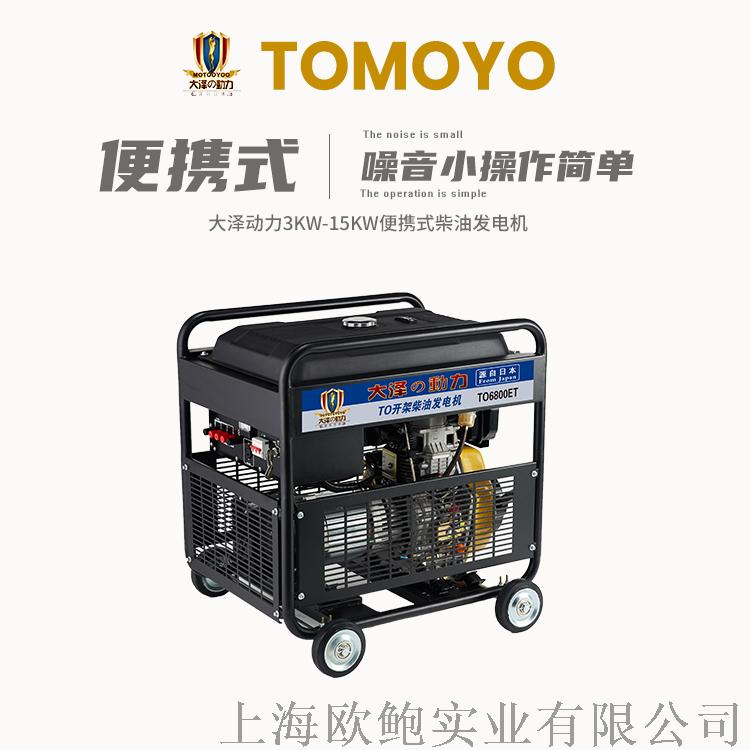 大泽动力10kw柴油发电机TO14000ET基本介绍 发电机组是种小型发电设备,系指以等为燃料,以机为原动机带动发电机发电的动力机械。整套机组般由机、发电机、控制箱、燃油箱、起动和控制用蓄电瓶、保护装置、应急柜等部件组成。整体可以固定在基础上,定位使用,亦可装在拖车上,供移动使用。发电机组属非连续运行发电设备,若连续运行过12h,其输出功率将低于额定功率约90%。尽管发电机组的功率较低,但由于其体积小、灵活、轻便、配套齐全,便于操作和维护,所以广泛应用于矿山、铁路、野外工地、道路交通维护、以及工厂、企业、 等部门,作为备用电源或临时电源。 大泽动力10kw柴油发电机TO14000ET性能特点