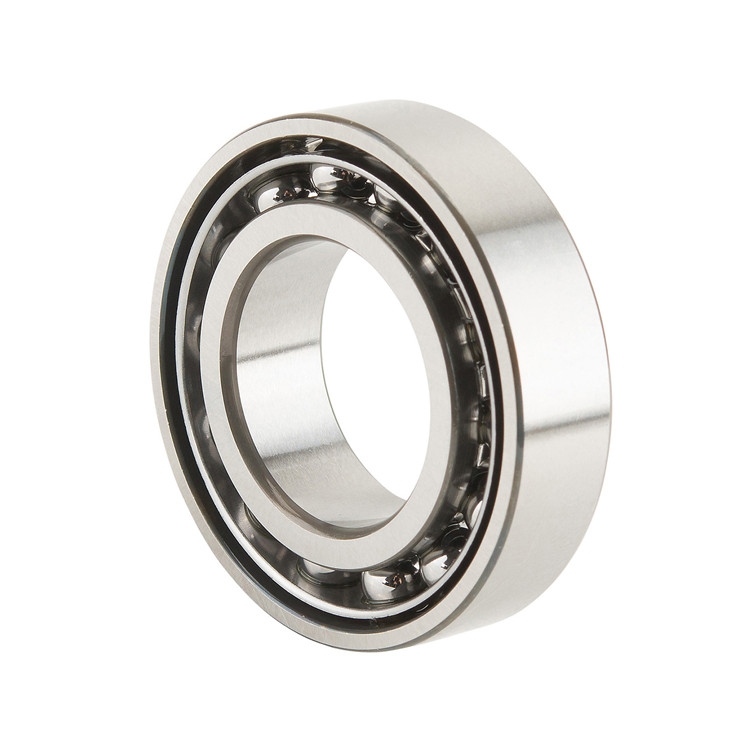 角接触球轴承可同时承受径向负荷和轴向负荷。能在较高的转速下工作。接触角越大,轴向承载能力越高。高精度和高速轴承通常取15 度接触角。在轴向力作用下,接触角会增大。角接触球轴承分为单列和成对双联。