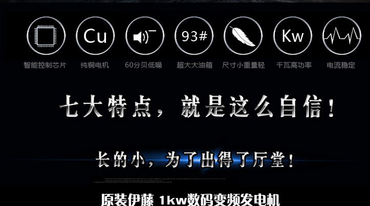 5、独特的风冷结构获得专利.高灵敏度保护开关,不会因为超载损坏发电机