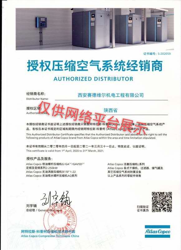 西安赛德维尔机电工程有限公司是阿特拉斯科普柯西北区授权代理商,销售阿特拉斯微油螺杆空压机,阿特拉斯无油空压机,阿特拉斯离心空压机,阿特拉斯移动空压机,阿特拉斯无油涡旋空压机,阿特拉斯活塞空压机,阿特拉斯鼓风机,阿特拉斯真空泵,阿特拉斯吸附式干燥机,阿特拉斯冷冻式干燥机,阿特拉斯精密过滤器等产品。