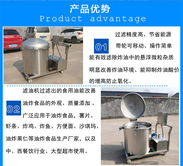 1、煎炸油过滤机能有效滤除煎炸油中的悬浮微粒杂质显改环境;