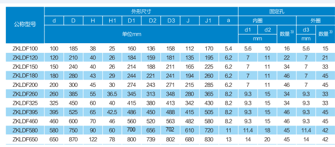 ZKLDF系列推力角接触球轴承包括一个整体外圈、两个内圈和两组钢球及保持架组件,接触角为60度。外圈和内圈带有安装孔,方便通过连接螺栓对轴承进行安装固定。轴承自身通过联接螺栓固定,保证安装运输和搬运。 ZKLDF推力角接触球系列转台轴承的两侧有密封盖,可防止外部污物、杂质的进入和内部润滑脂的泄漏。 ZKLDF推力角接触球系列转台轴承使用复合钡基脂润滑,亦可通过外圈上的油孔再润滑。 ZKLDF推力角接触球系列转台轴承采用双向60度接触角、双排球结构设计故可承受径向载荷、双向轴向负荷和倾覆力矩;特殊结构的黄铜保持架设计,使其具有 的强度、较低的摩托力矩;因此该系列轴承特别适合于 速、长期运转和对刚性、精度有高要求的场合。