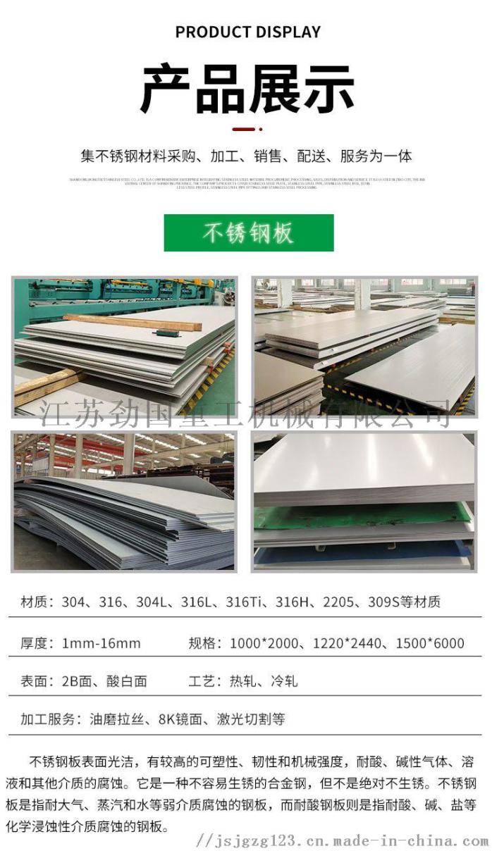 双相不锈钢2507材质不锈钢板 定尺切割性能特点 2507不锈钢应用于石油和天然气工业;海上石破天油平台(热交换器管,水处理和供水系统,消防系统,喷水系统,稳水系统; 石油化工设备; 脱盐(淡化)设备(和设备中的高压管,海水管);既需要高强度同时又需要高耐腐蚀性的机械和结构部件;燃(废)气净化设备. 双相不锈钢2507材质不锈钢板 定尺切割技术参数 SAF 2507的较高的铬及钼含量使其对有机酸如甲酸、乙酸等具有较强的抗整体腐蚀的能力.SAF2507合合金对无机酸,尤其是那些包含氯化物的无机酸也具有较强的抗腐蚀能力. 双相不锈钢2507材质不锈钢板 定尺切割使用说明 和904L相比,SAF2507对稀释的混有氯根离子的 具有强的抗腐蚀能力.904L是奥氏体状态的合金, 于抗纯 腐蚀.