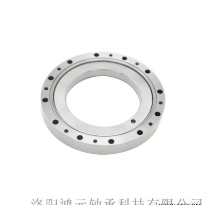 谐波减速器轴承包括刚性轴承和柔性轴承两大类型,刚性轴承包含四种系列,CSG系列、SHG系列,其命名方式采用减速器的命名;柔性轴承的命名为HYR。 谐波减速器用刚性轴承为交叉圆柱滚子结构,根据其使用场合分为外圈分体、内圈整体,外圈、内圈都是整体两大类;滚动体为圆柱滚子,互成90°垂直排列在V型滚道中,这种结构的轴承可同时承受轴向载荷、径向载荷和倾覆力矩等各个方向的载荷,轴承具有高精度、高刚性以及复合承载能力。 产品名称:SHD型(外圈整体、内圈整体)外圈和内圈均为整体结构,高度比SHG的低,节约减速器的安装空间,主要应用在SHD减速器输出部位。